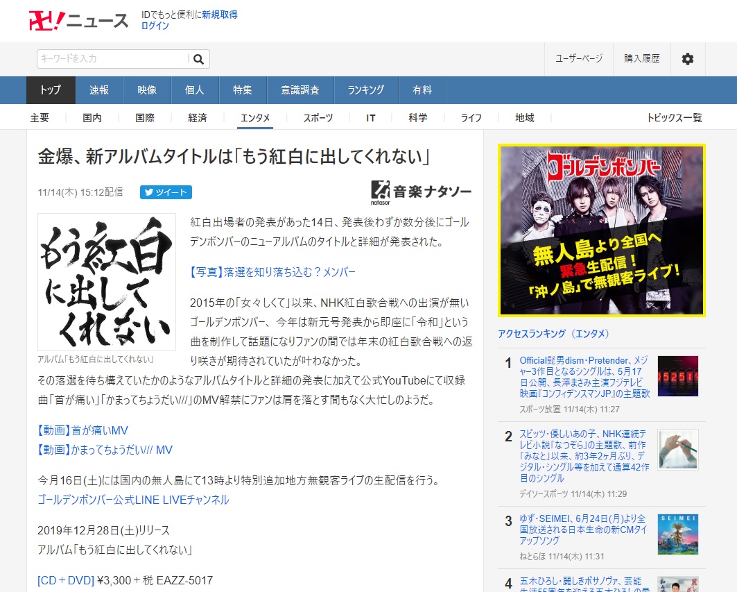 ゴールデンボンバー 限定公開記事について 管理人 2015-08-19 記事内に商品プロモーションを含む場合があります 鬼龍院さんが未成年と飲酒した、との記事を掲載しましたが、信憑性が薄いことや女の子が一般人であることなどから公開を制限しました。 コメントくださったかた、ありがとうございました。 この件については夜にでも更新します。